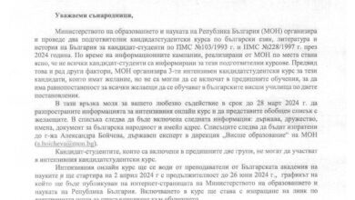Министерството на образованието и науката (МОН) организира и провежда два подготвителни кандидатстудентски курса и допълнително обучение по български език, литература…